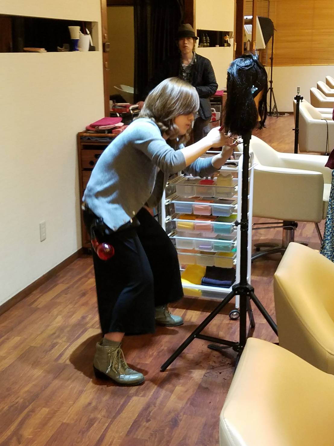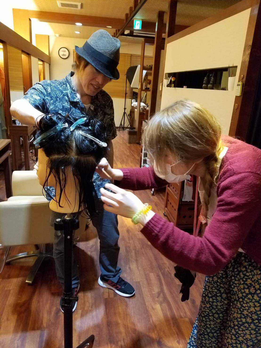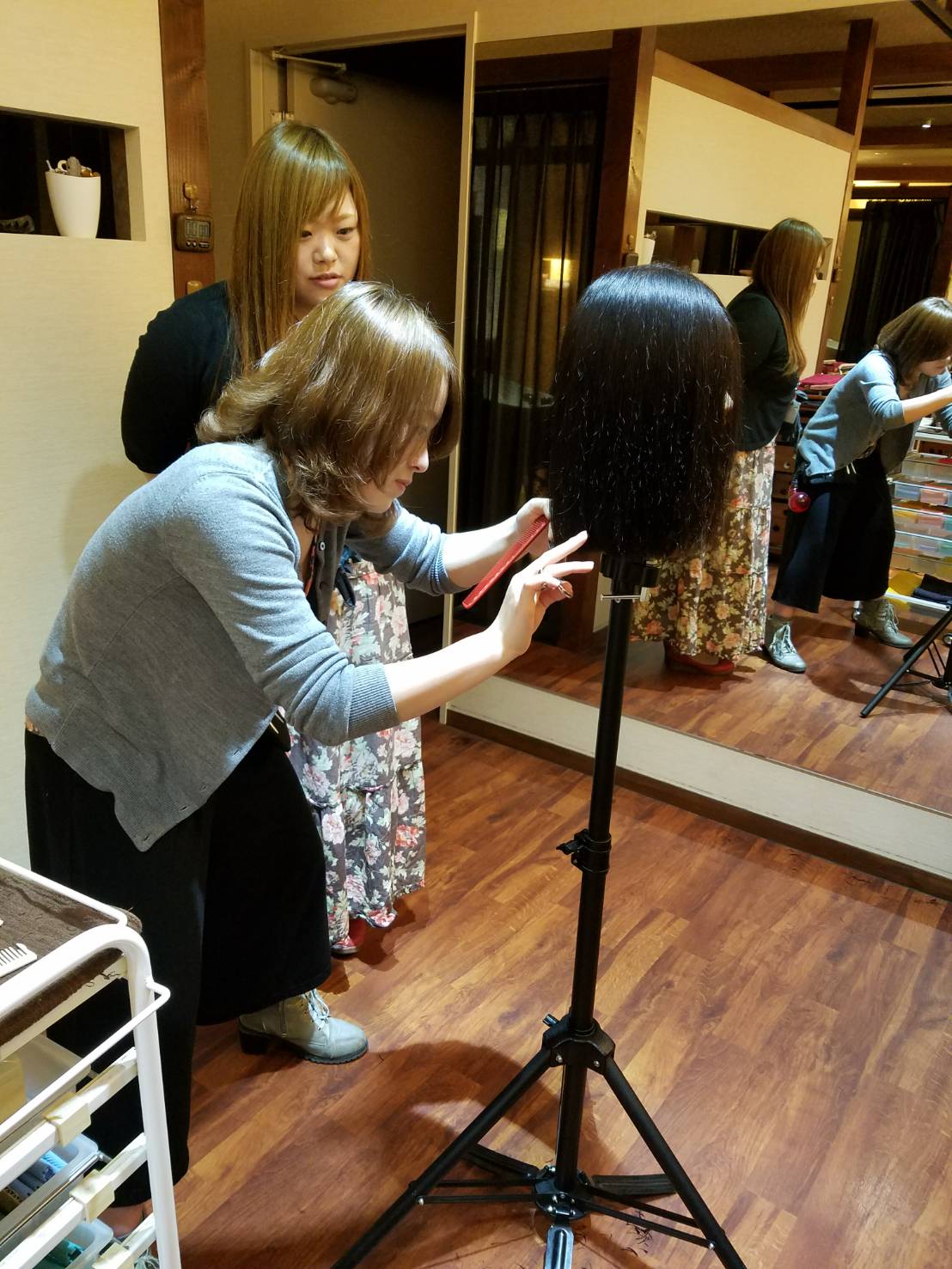 こんにちは(^∇^) エスアンドエフ美容室 halo🌺halo店 杉本です🎵 今日はアシスタントの鷲巣さんと友田さんの練習してるところを写しました✨ 毎月本店でやるテストに向けてカットの練習を頑張ってます❗❗ 店長と一緒に教えながら、私も自分のカットの見直しをしてます❗😊 やっぱり基礎は大事だなと改めて思います✨