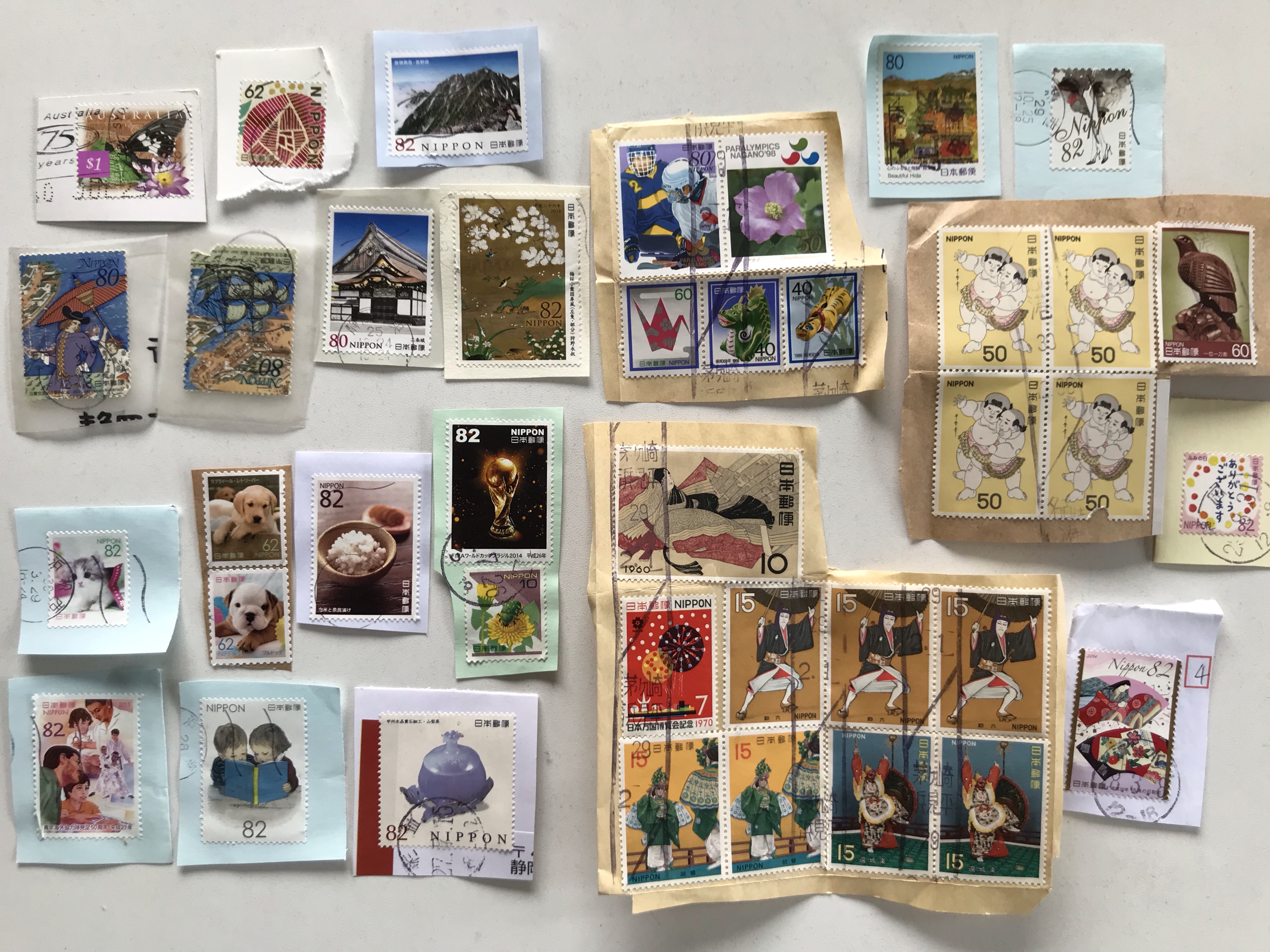 現在は郵便で貼られてきた古切手を 小さな社会貢献として収集した物を郵便局に持って行きます。