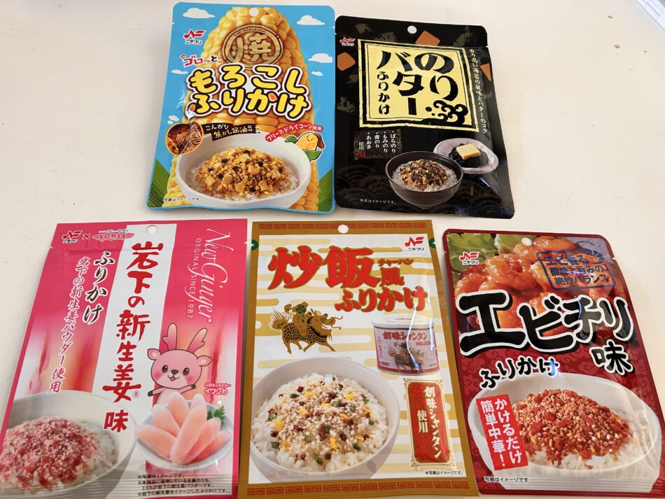 エスアンドエフ美容室フォーティワン瀬名店の冨田です‼️ 担当させていただいているお客様がお勤めのニチフリのふりかけを沢山いただきました😊 エビチリ味や炒飯風、有名な岩下の新生姜味、のりバターやもろこしとバリエーションに富んだラインナップですね🩷 食べるのが楽しみです‼️ ありがとうございました✨